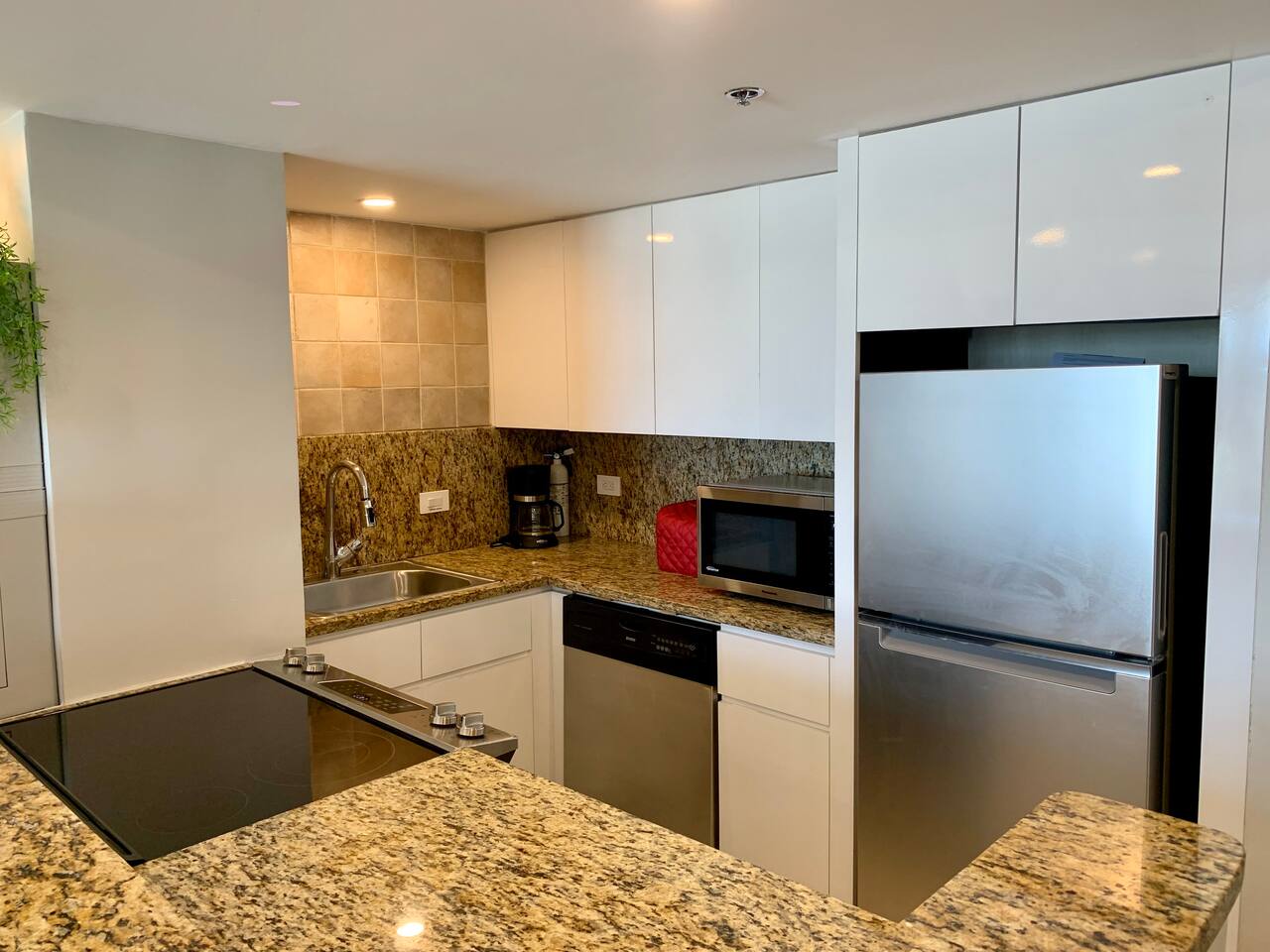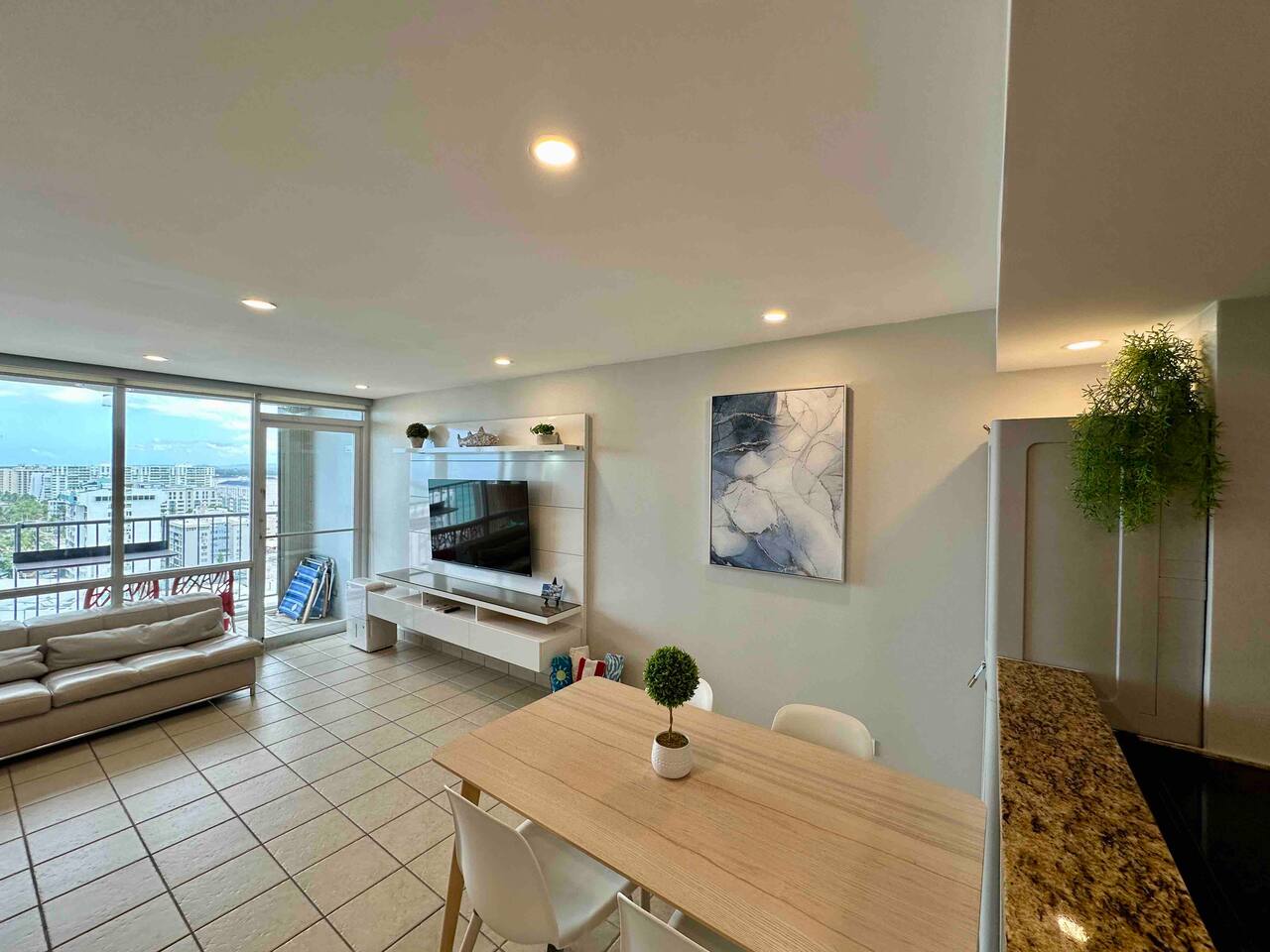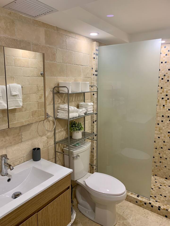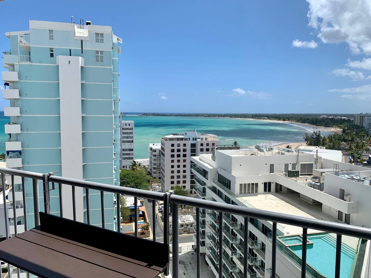 Completely remodeled 2 bedroom condo with ocean views on the 15th floor. Fully furnished kitchen with dishwasher, oven, air fryer & microwave as well as clothes washer & dryer in the condo. Bedrooms and living room all have individual air conditioners. We are five minutes from the SJU airport, and only a 10 minute drive to places like Old San Juan, Condado, and the Coliseo for concerts. Direct secured access to the beach. Located next to the Fairmont El San Juan Resort & Casino and directly on Isla Verde Beach! Enjoy extras like beach chairs, cooler and beach toys. Outdoor shower at beach entrance to wash off. The condo has a 24 hour security, a free designated parking space in the attached parking garage is included, as well as direct beach access. Full service bar located in the lobby with service to the beach area. Cafe open in the lobby for breakfast & lunch including snacks, coffee and smoothies.