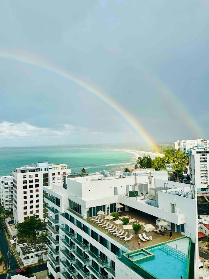 Directly on Isla Verde Beach! Walking distance to restaurants, CVS/Walgreens, bars, casinos, shopping and more. Only a few minutes to the SJU International Airport, and short Taxi/Uber to Old San Juan, Condado or Pinones .