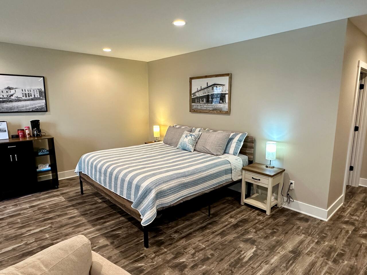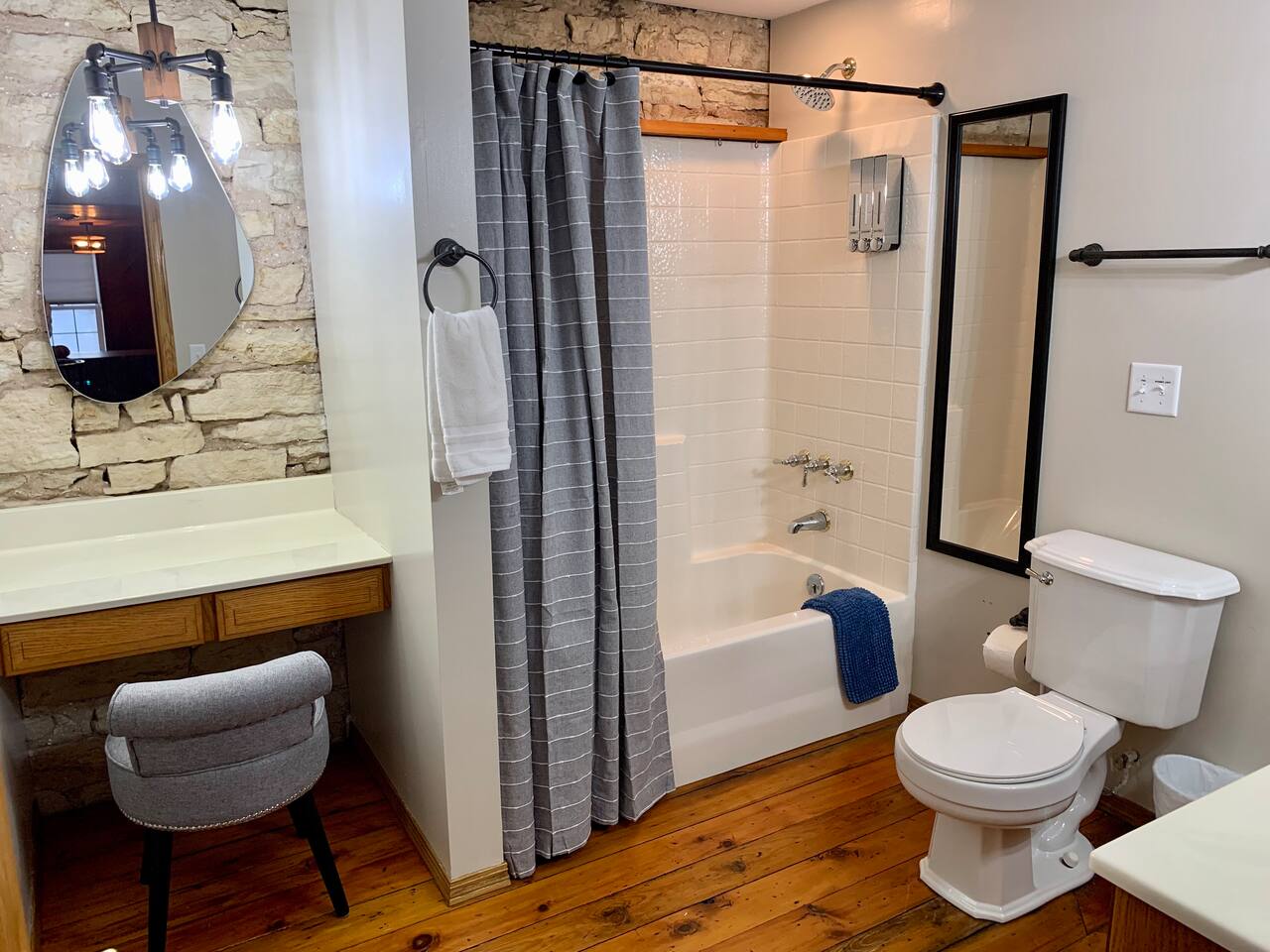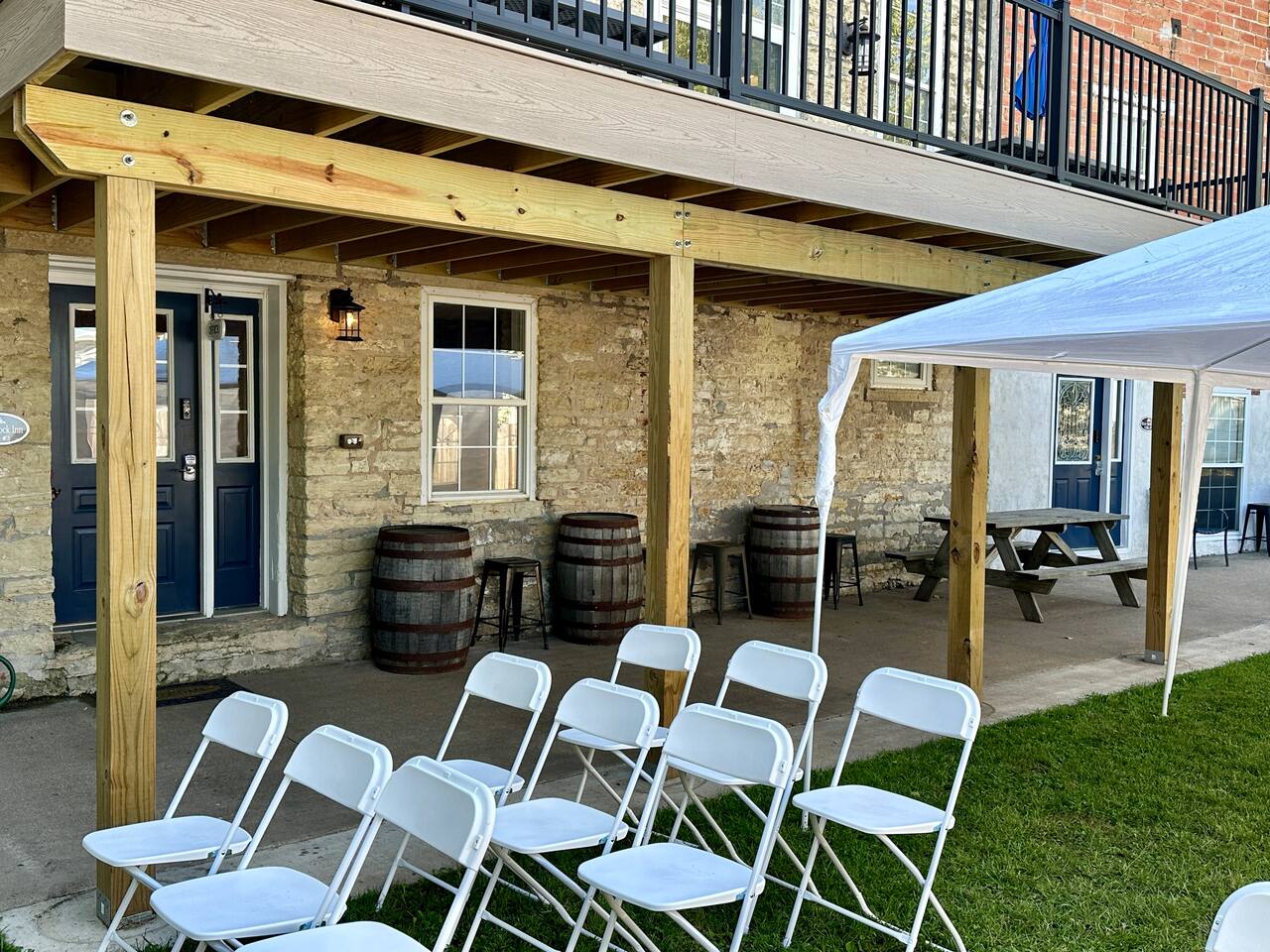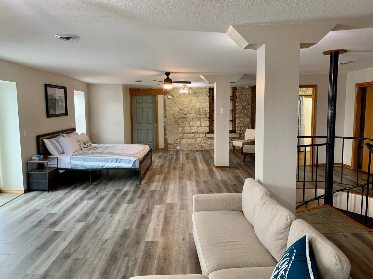 This unique & historic home has 7 bedrooms with 7 bathrooms including a 6 person indoor hot tub, two full kitchens and is steps from our resort’s private beach, boat ramp and docks; right on the Mississippi River. The River Rock Inn can be rented as an entire home or by separate Villas all connecting to a common lobby on each floor. There is a 30' deck overlooking the river which is perfect for special occasions or a picnic outside in the shade. (Renovations completed June 1, 2024) *This listing is for the entire building so you will have access to all bedrooms etc privately. There is no 24 hour staff or service.