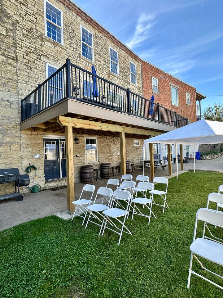 Located on the south edge of town directly on the Mississippi River and below the bluffs of the Bellevue State Park. The mansion is located on HWY 52 near a stocked trout stream and within walking distance to restaurants, bars, shopping and a brewery. It is on the property of the Riverview RV Park Resort which has many other stay options including Tiny Home Cabins, Rental Camper, and campground with seasonal and overnight sites.