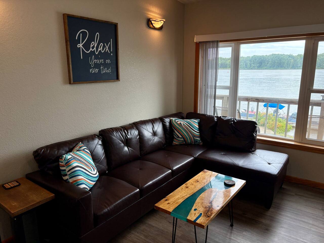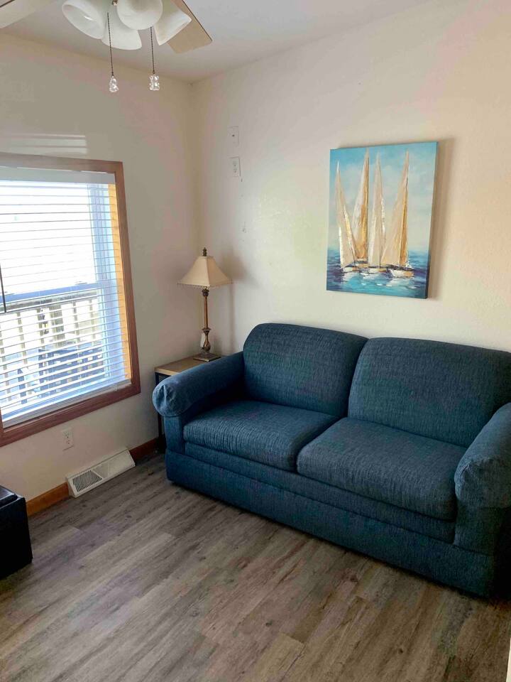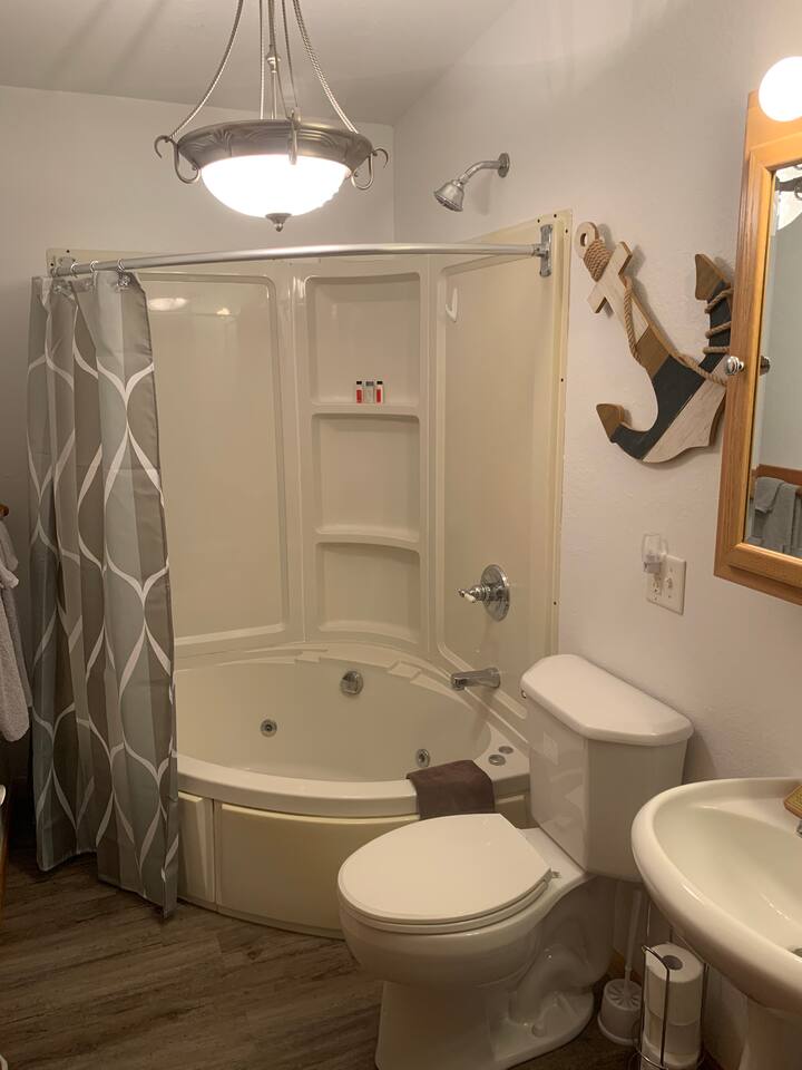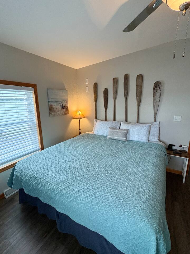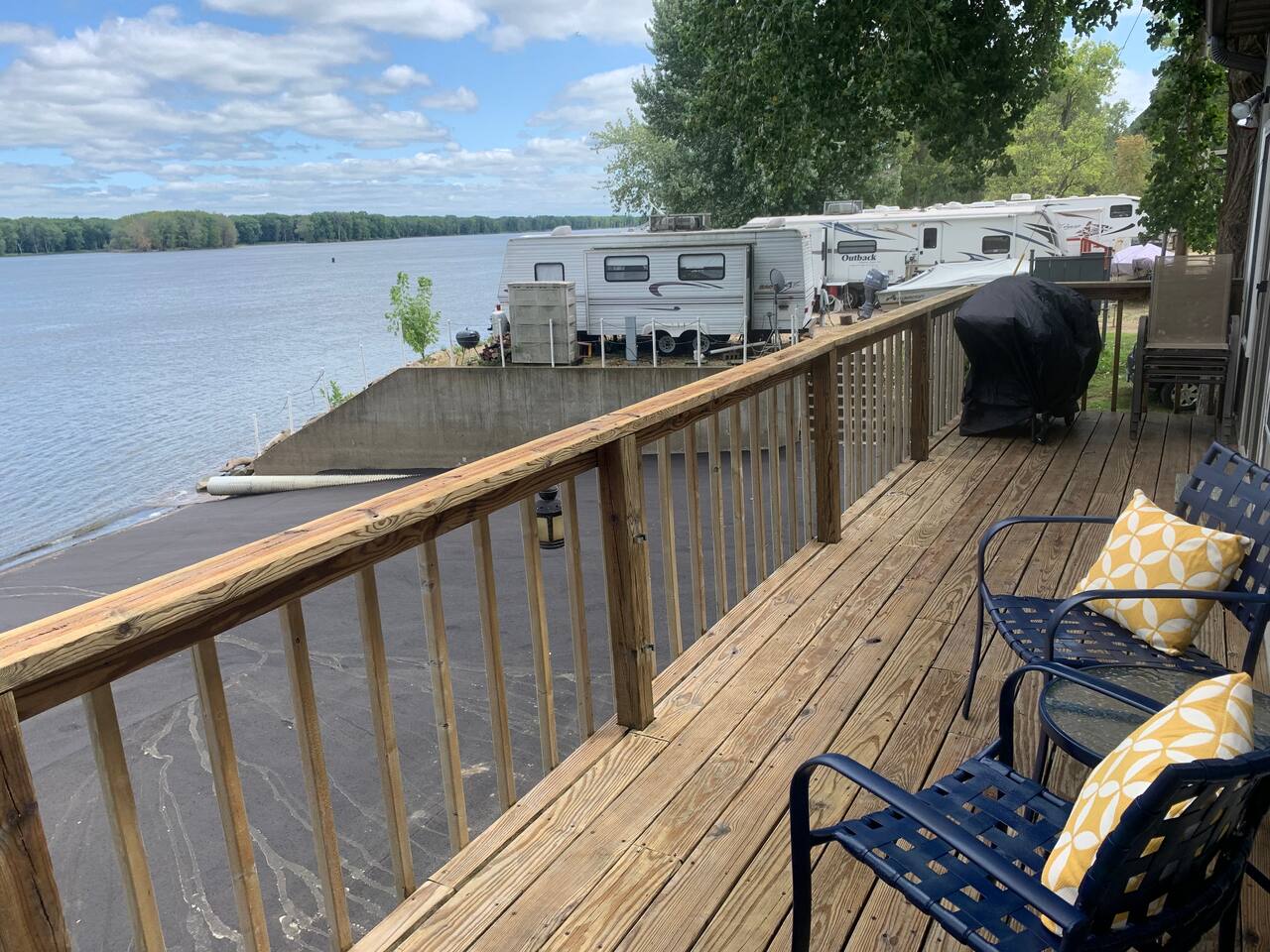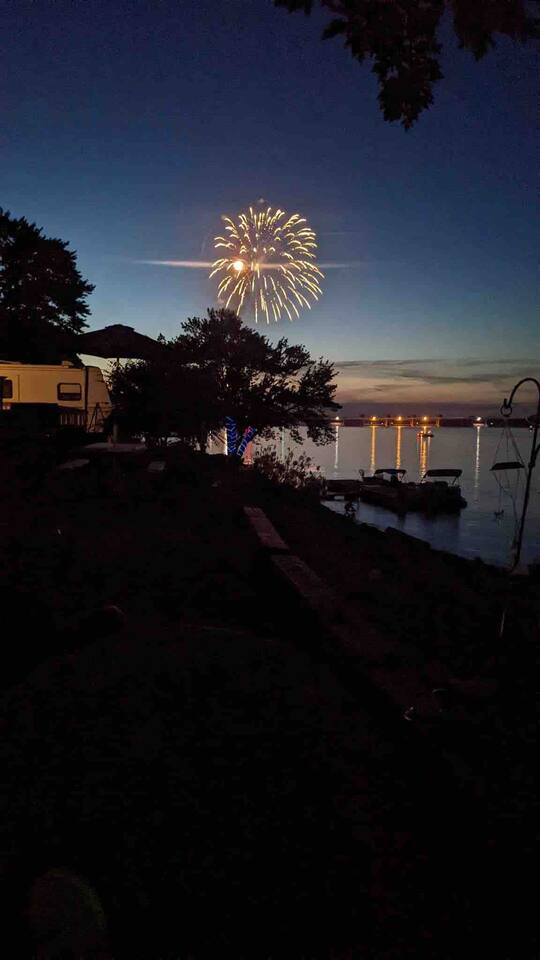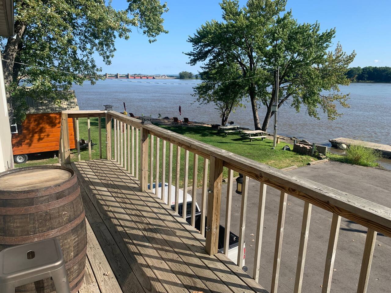 Enjoy a true riverfront experience in our Mississippi River Cabin located in the Riverview RV Park in Bellevue Iowa. View a morning sunrise over the river while having coffee on your private deck or relax indoors with a king bed, Fireplace, and jetted bath tub. The cabin has heat/air & WiFi with roku TV. There is also a private beach, boat docks & launch all for our guests. Fish from the riverbank & enjoy all the River has to offer! Close to hiking, skiing, casinos & shopping in Galena IL.