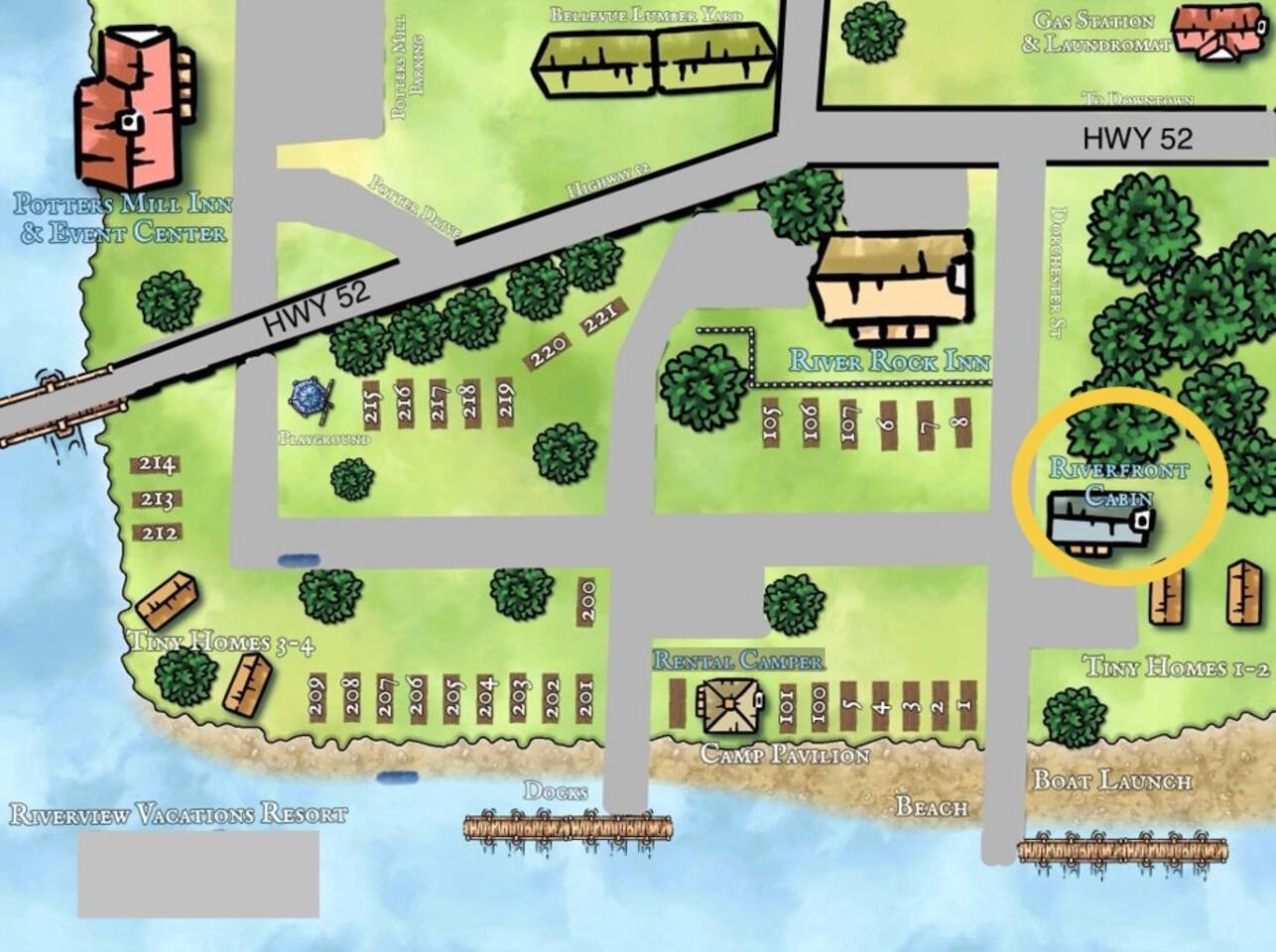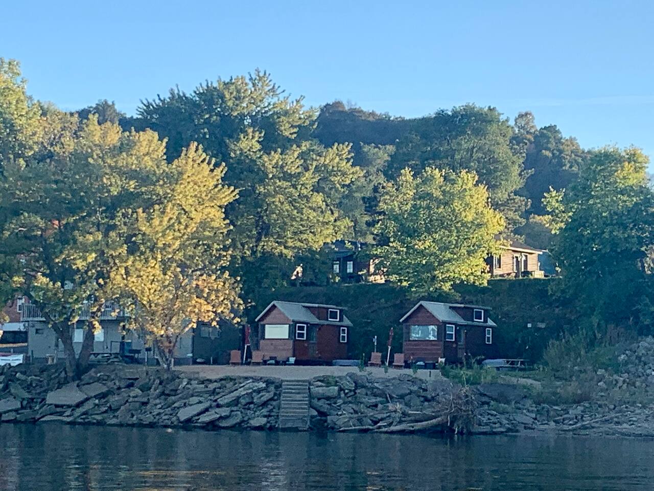 Please note there are stairs to access the cabin it is the second story of the building. The lower floor is storage. Firewood for your fire-pit can be purchased on site. There will be a one-time pet fee added to your stay if bringing a pet. In a case of a known flood event you will have the option to rebook for a later date up to two years out from your original reservation. There is no threat of flash flooding. Our resort (Riverview Vacations) also offers tiny home cabins, RV rental and campground & Potters Mill Event Center.