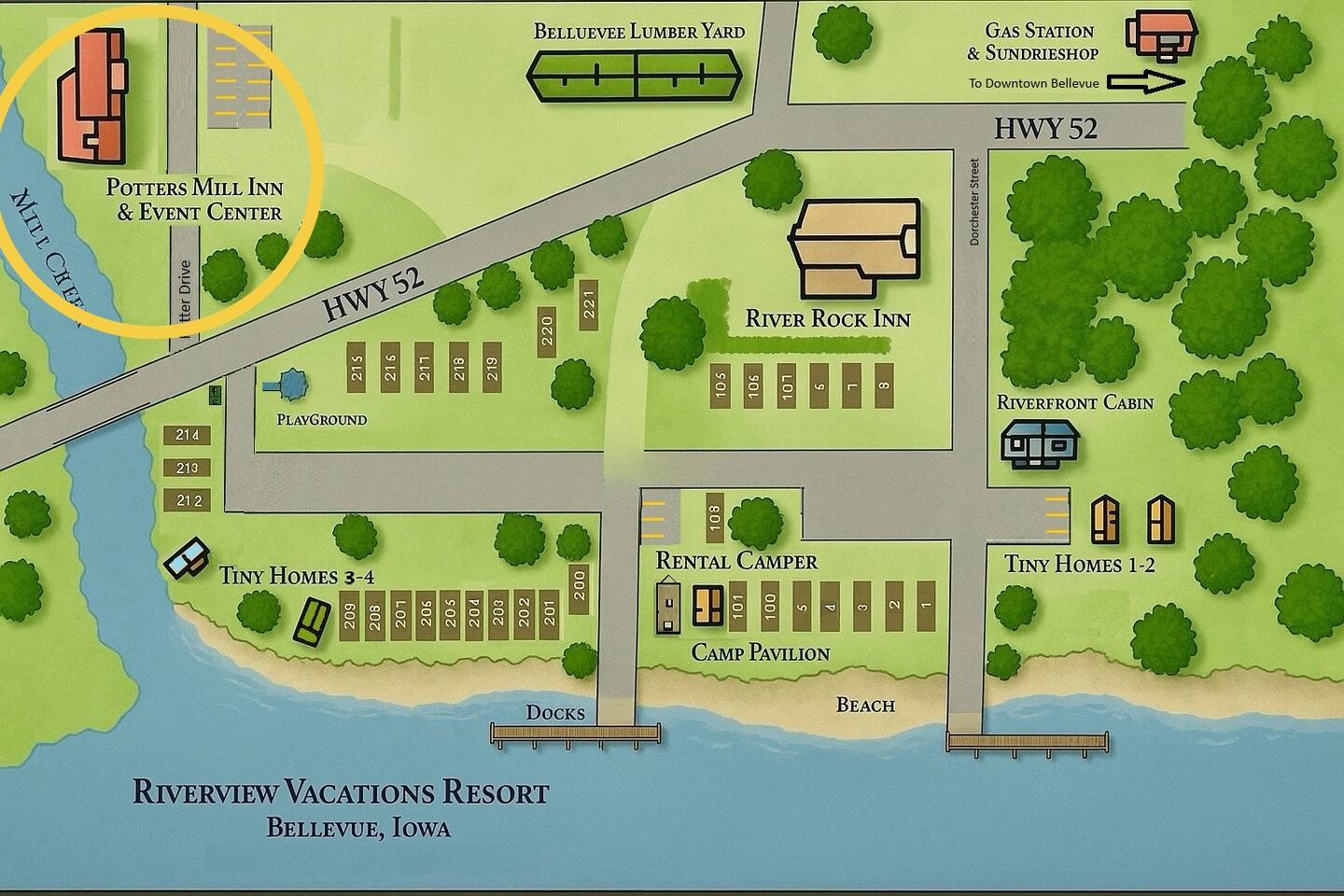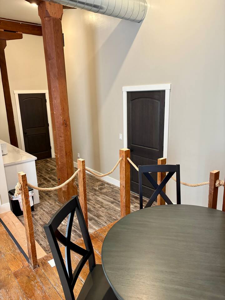 This 1840’s Historic Grist Mill, has been transformed into a charming retreat while preserving its original character. This Suite features exposed hand hewn wood beams, and direct views of Mill Creek & the Bellevue State Park. Enjoy a King Bed, private bath with shower and soaking tub, along with modern amenities in a space filled with rustic elegance and historic charm. This room is a connecting room with the Timber Loft, so it can be expanded to accommodate the entire family. Located on the second floor, the elevator eliminates the need for steps. There is a shared kitchen space on this floor as well as guest laundry and vending. Part of the Riverview Vacations Resort, Potter's Mill is in walking distance to downtown Bellevue and steps from hiking trails and riverfront views. This suite is ideal for romantic getaways, nature lovers, and anyone seeking a peaceful escape with a touch of history.