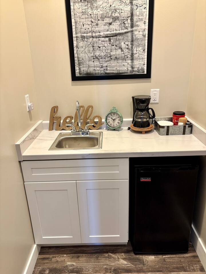 The Driftwood Den blends rustic charm with modern comfort. It’s a perfect hideaway for couples looking to escape the city and experience small town tranquility. Gaze out your window to the soothing sights and sounds of Mill Creek as it winds alongside the mill; and catch a glimpse of the numerous wildlife in the Bellevue State Park right in your back yard.