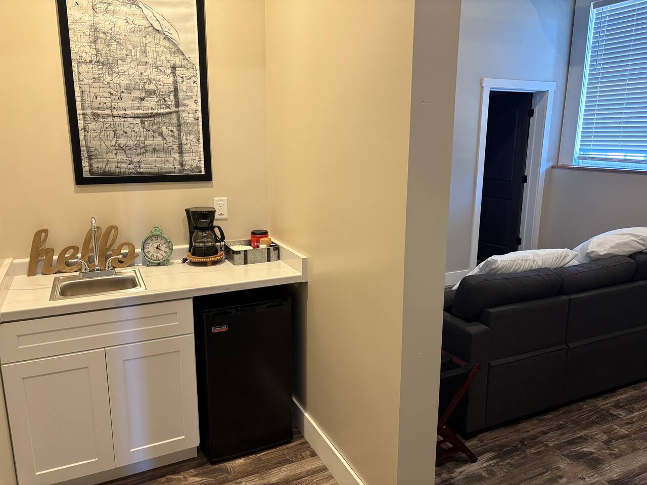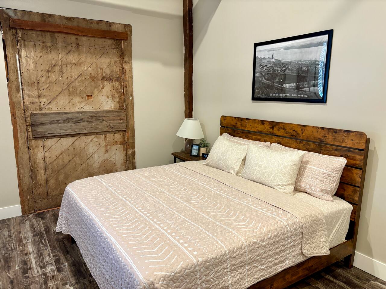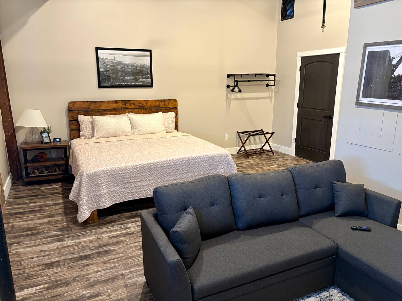 This 1840’s Historic Grist Mill, has been transformed into a charming retreat while preserving its original character. The Suite features exposed hand hewn wood beams, and direct views of Mill Creek & the Bellevue State Park. Enjoy a King Bed & Sofa Sleeper, private bath, and modern amenities in a space filled with rustic elegance and quiet charm. Part of the Riverview Vacations Resort, Potter's Mill is in walking distance to downtown Bellevue and steps from hiking trails and riverfront views, this suite is ideal for romantic getaways, nature lovers, and anyone seeking a peaceful escape with a touch of history.