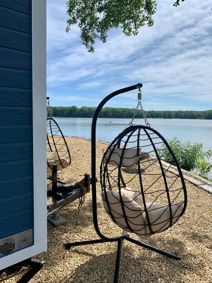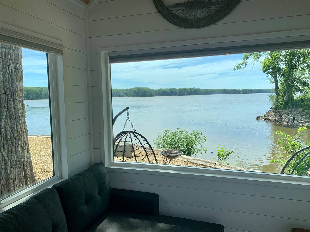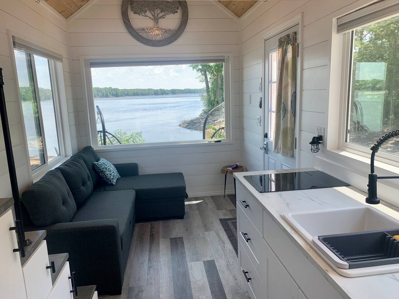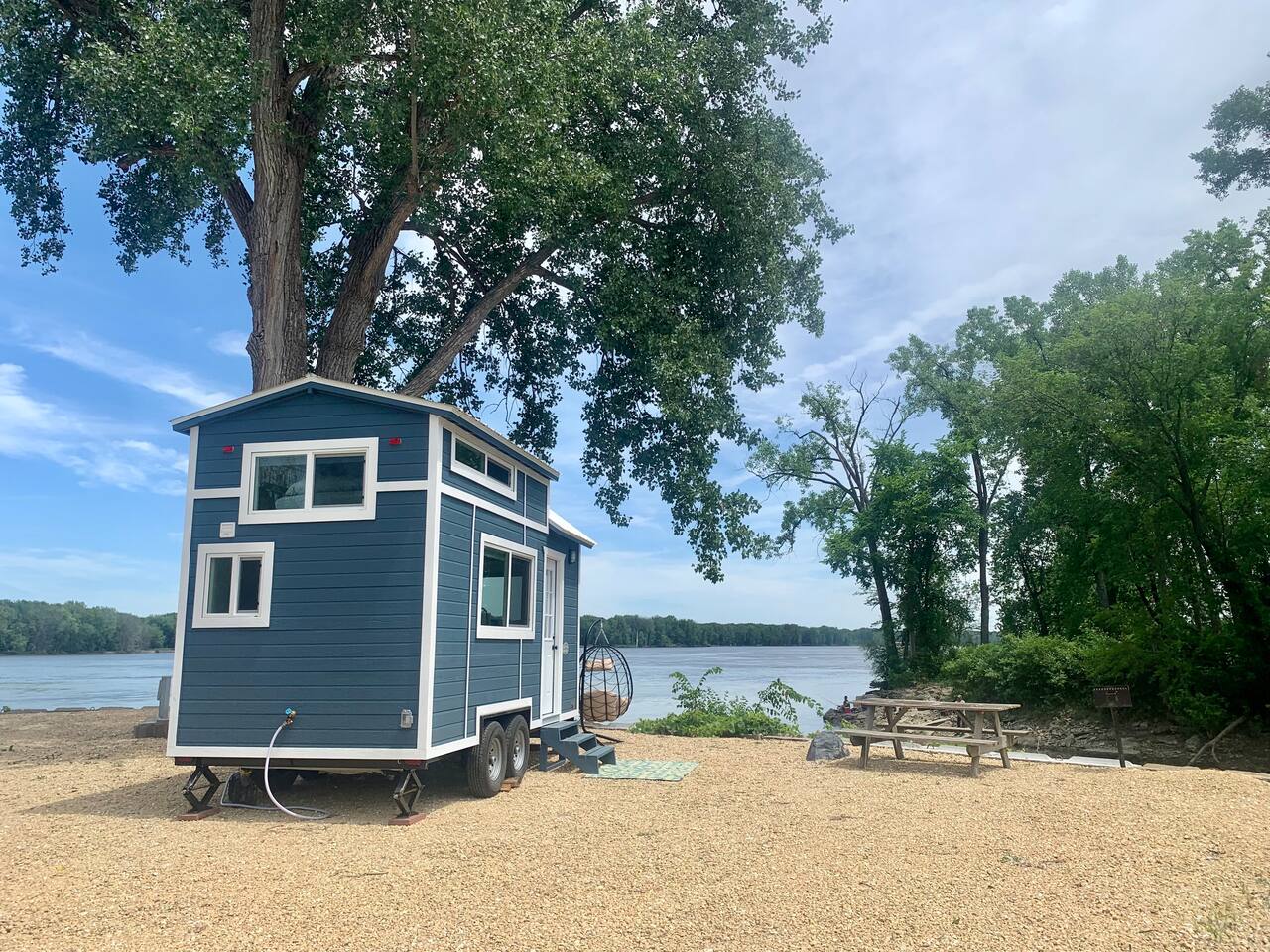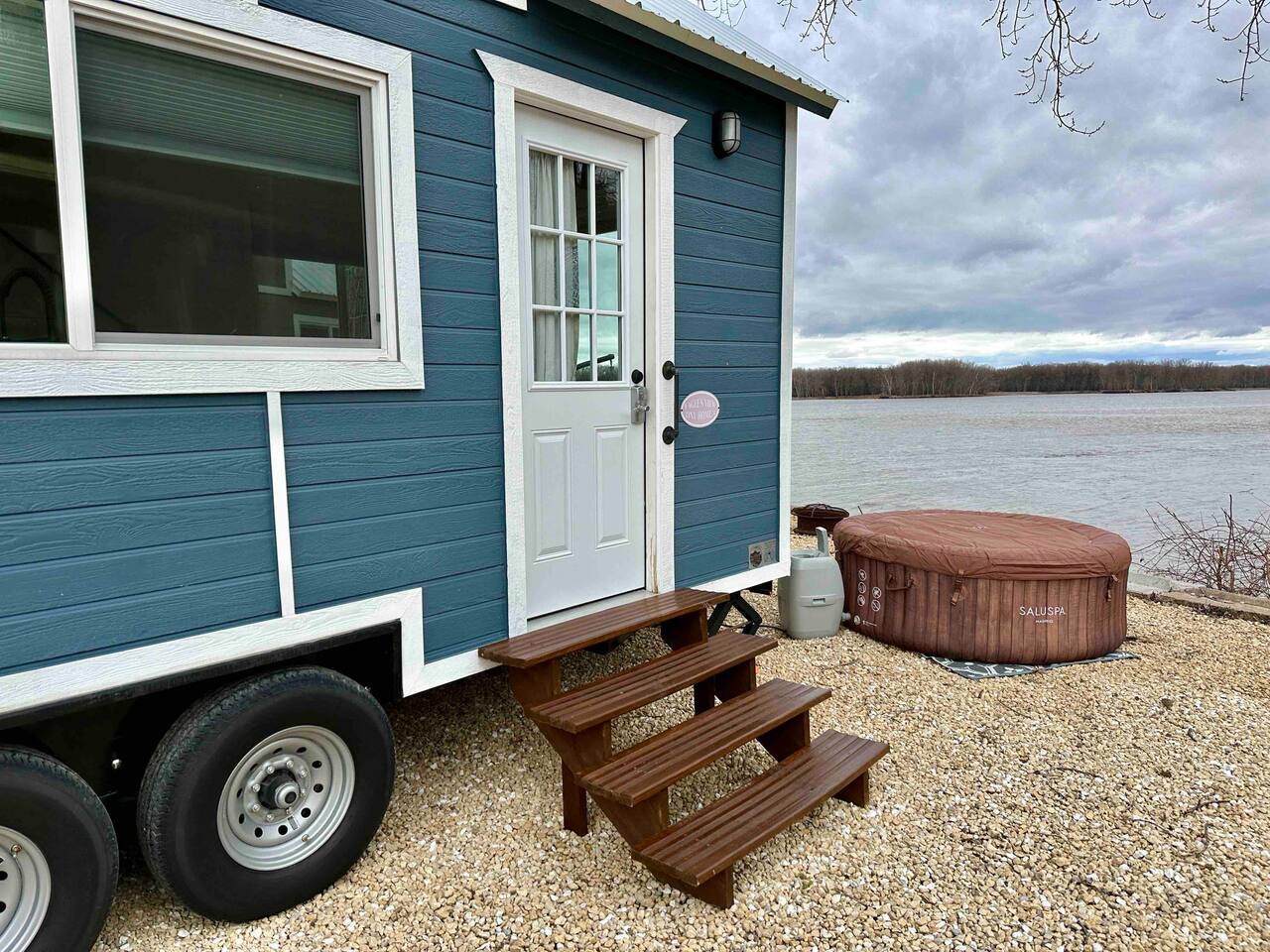 Have you ever wanted to stay in a Tiny Home but haven't had the opportunity? Now you can stay in a custom built Tiny Home right along the mighty Mississippi River in Bellevue Iowa! These Tiny Homes feature all the comforts of a standard home including Heat/AC, Kitchen, Bathroom, living room and sleeping loft. Each Tiny Home sleeps 4 adults with a queen bed in the loft and a pull out sofa in the living room. Outside is a private picnic area and Hot Tub!