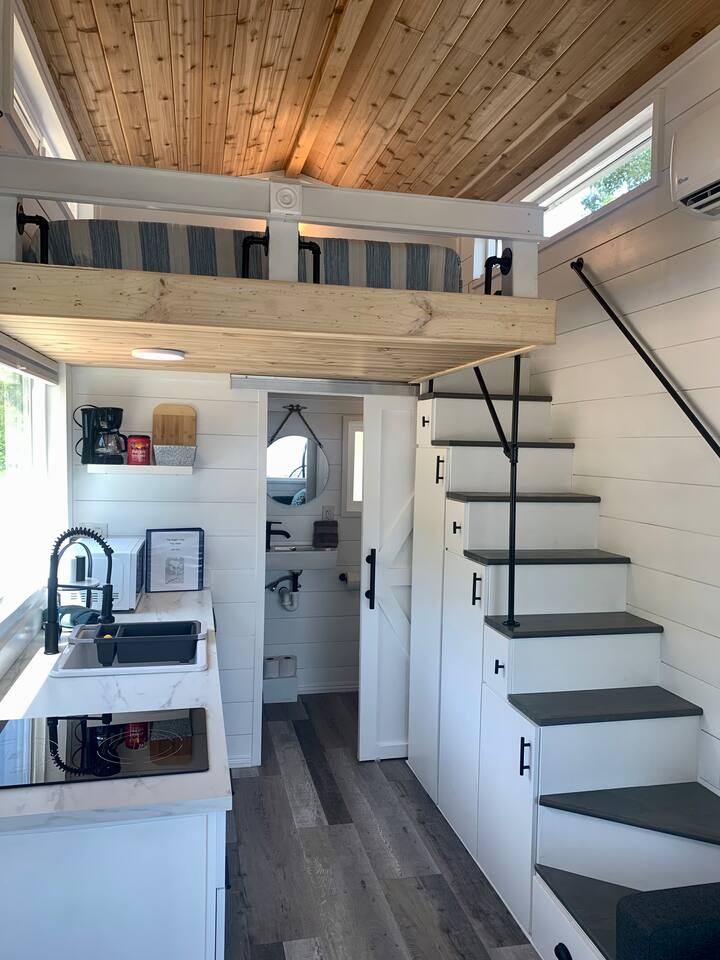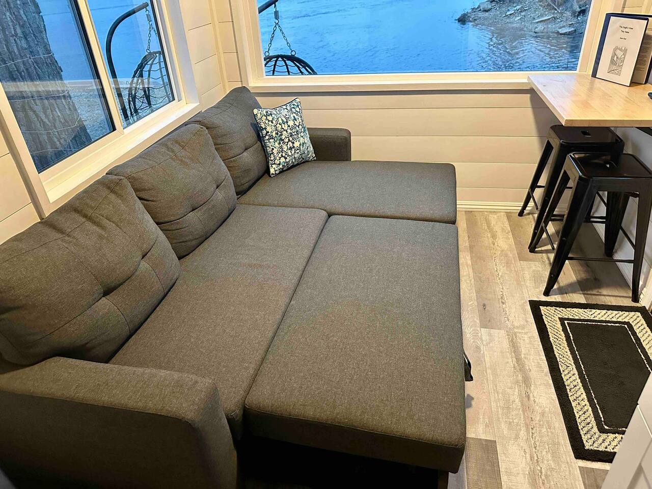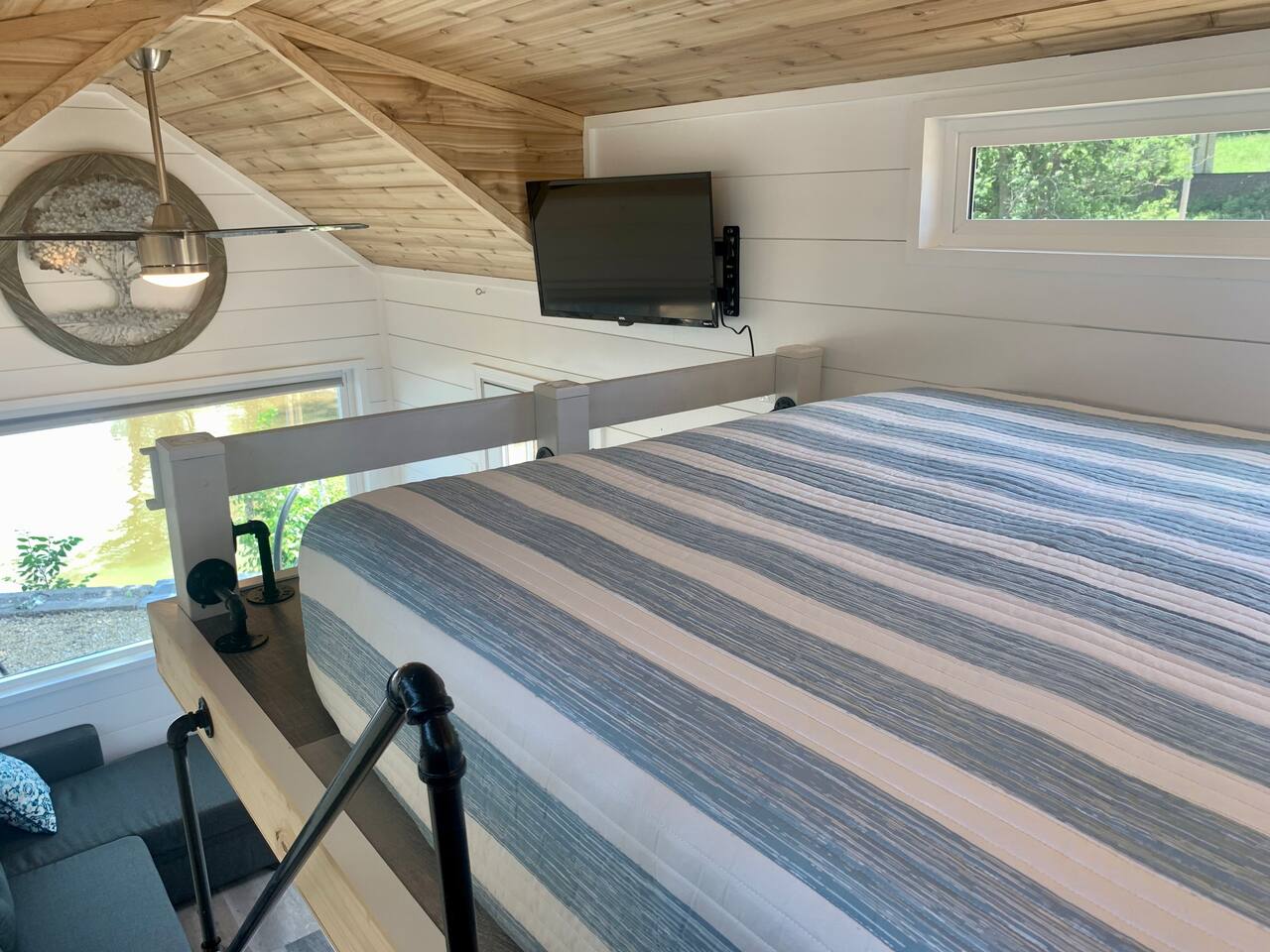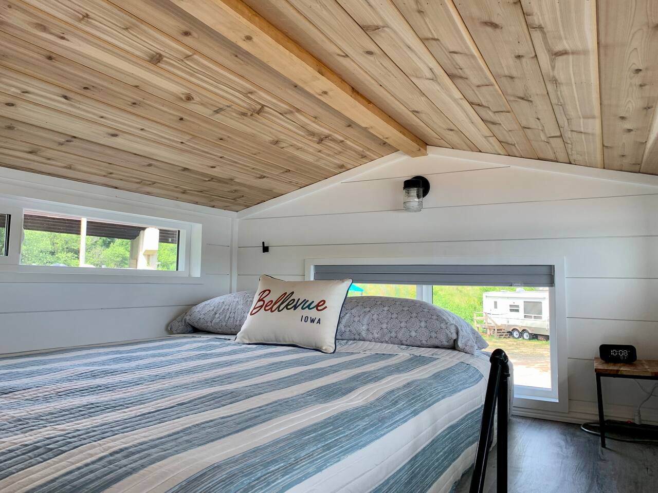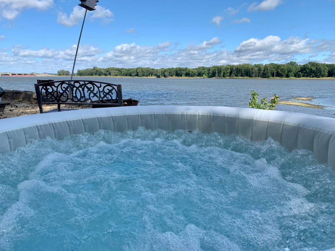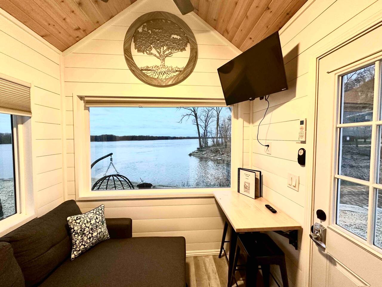 Have you ever wanted to stay in a Tiny Home but haven't had the opportunity? Now you can stay in a custom built Tiny Home right along the mighty Mississippi River in Bellevue Iowa! These Tiny Homes feature all the comforts of a standard home including Heat/AC, Kitchen, Bathroom, living room and sleeping loft. Each Tiny Home sleeps 4 adults with a queen bed in the loft and a pull out sofa in the living room. Outside is a private picnic area and Hot Tub!