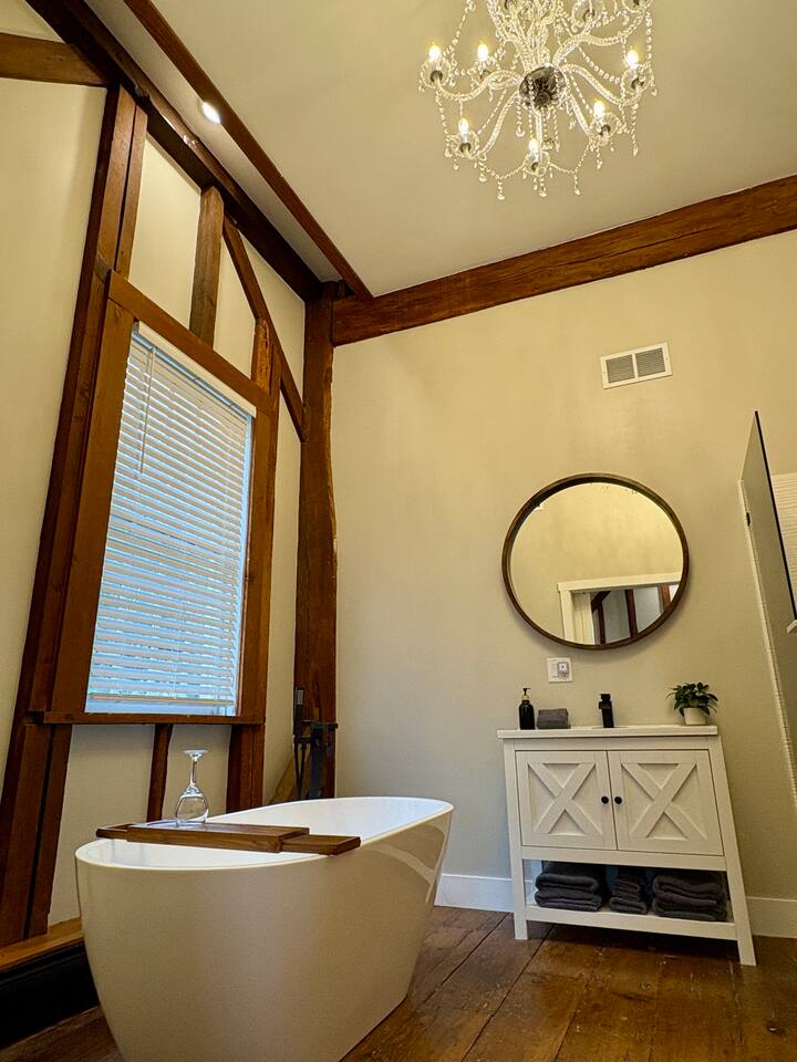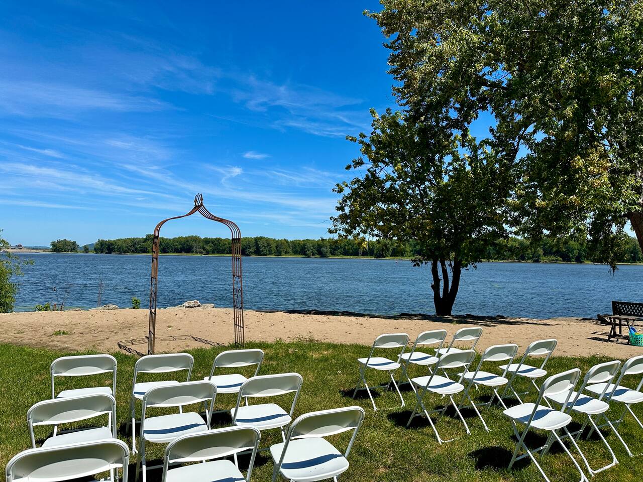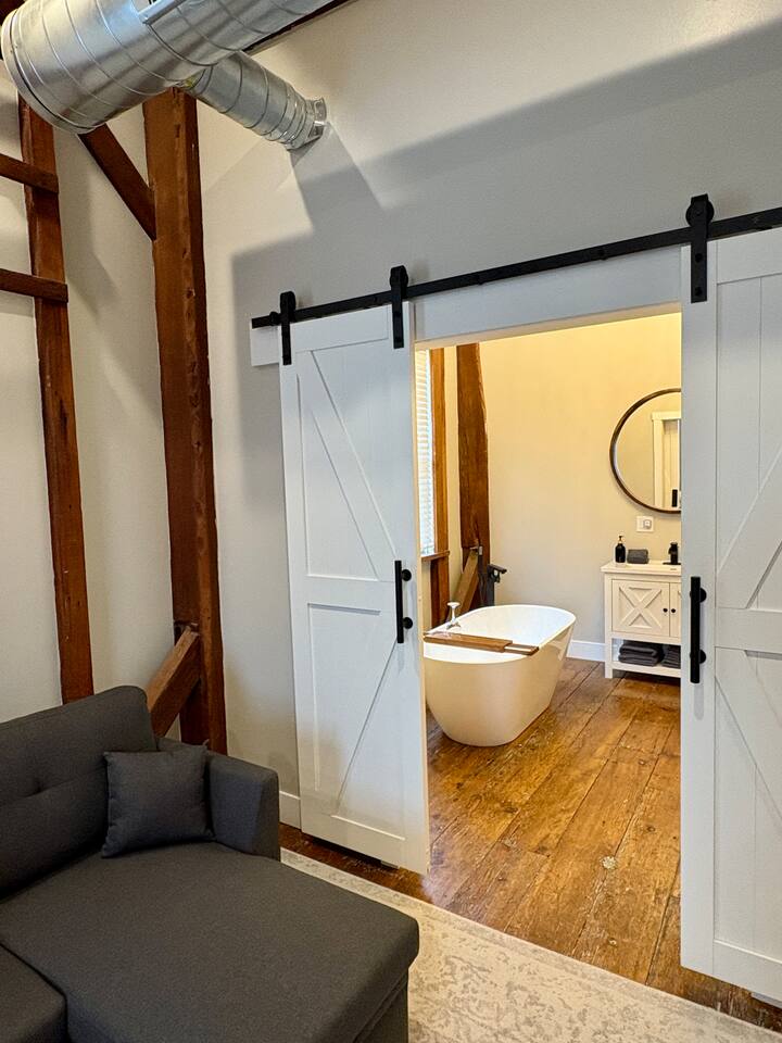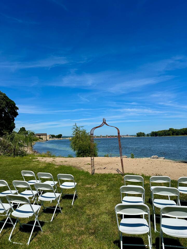 Located directly on the Mississippi River in Bellevue Iowa, Potter's Mill is Iowa’s newest wedding venue in Iowa’s oldest Mill. We offer overnight accommodation with suites in the Mill and at the River Rock Inn, (our Mansion on the Mississippi), as well as cabins all on one stunning property. The event center offers both an indoor ceremony and reception area with hand-hewn wood beams and exposed limestone set beautifully with crystal chandeliers. The property also offers outdoor ceremony space along the Mississippi River or Mill Creek. We strive to make your special event as easy as possible. Potter’s Mill can host your rehearsal, ceremony and reception all at one picturesque location. We can also provide contacts for local caterers, hair & makeup artists, and offer full bar service on site. *For a limited time, our All Inclusive Ceremony and Reception package includes a 3 night stay in our beachfront property in Puerto Rico! Perfect for a honeymoon, no passport needed! Wedding packages always include chair and table setup as well as linen. We also include 3 luxury suites in the Mill for the Bride & Groom and their family the night before and night of the event. Inside each suite, you will find a private bathroom, comfortable beds, and a cozy living space. Here, you and your loved ones can celebrate surrounded by stunning river views with the backdrop of the Bellevue State Park bluffs.