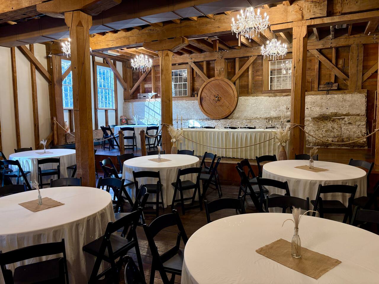 Packages & Pricing: All Inclusive Package - $5,000 Wedding, Rehearsal, Reception & Honeymoon *150 guests maximum *Includes availability to decorate Friday and includes 3 suites Friday & Saturday night in the Mill *Includes ceremony space & Friday evening rehearsal dinner space if requested *Includes 3 nights stay in our beach-front condo in San Juan Puerto Rico for Honeymoon Potter’s Mill Ceremony & Reception Package -$3,000 *150 guests maximum *8am availability Saturday (Additional $250 Friday Decorating from 2pm to 5pm) *Includes overnight accommodation Saturday night in 3 suites in the Mill *Includes Ceremony Space, (Friday Rehearsal space & Decorating sold separate if requested ($500) Potter’s Mill Ceremony Only Package - $2,000 *100 guests *8am - 3pm Saturday availability for Ceremony *Ceremony in main event hall includes tables, chairs & linen *Includes Millstone Meeting Room/Loft and two-bedroom suite for overnight *Additional rooms sold separate $200-$300 each *$250 for Friday decorating 2pm – 5pm **Alcoholic beverages must be purchased from our bar, please discuss pricing prior to your event. We can supply a list of local caterers etc. for your event.